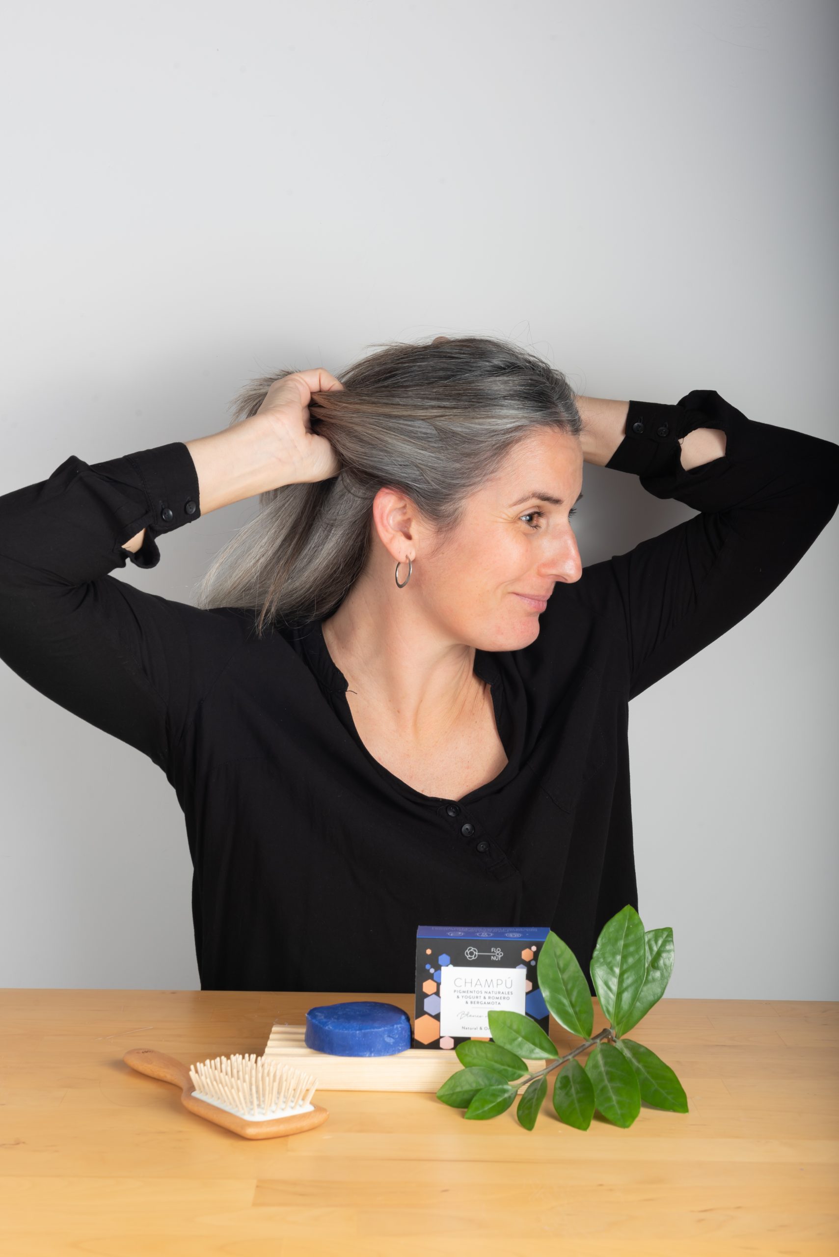 Gracias al kaolín y al romero, ayuda a purificar el cuero cabelludo y realza la luminosidad natural del cabello blanco o canoso, evitando que se amarillee y manteniendo un tono radiante y saludable.